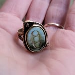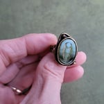Bohemian Earthy Mossy Oval Opal Antique Bronze Ring