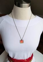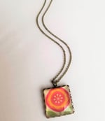 A whimsical flower of lively colors - orange and pink - make this a sweet and happy necklace. Hanging from fine dark patina brass chain (naturally lead and nickel free) Finished with a dark brass lobster clasp.