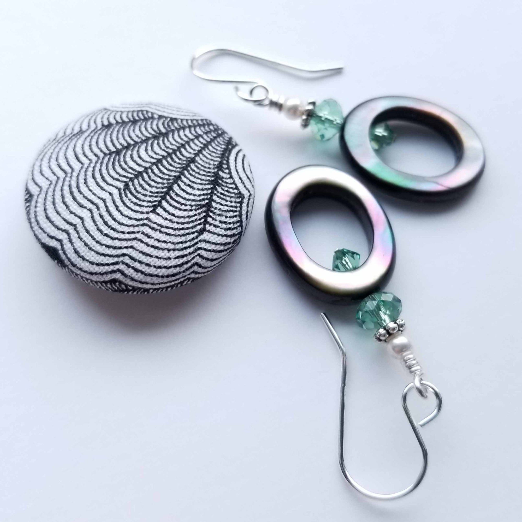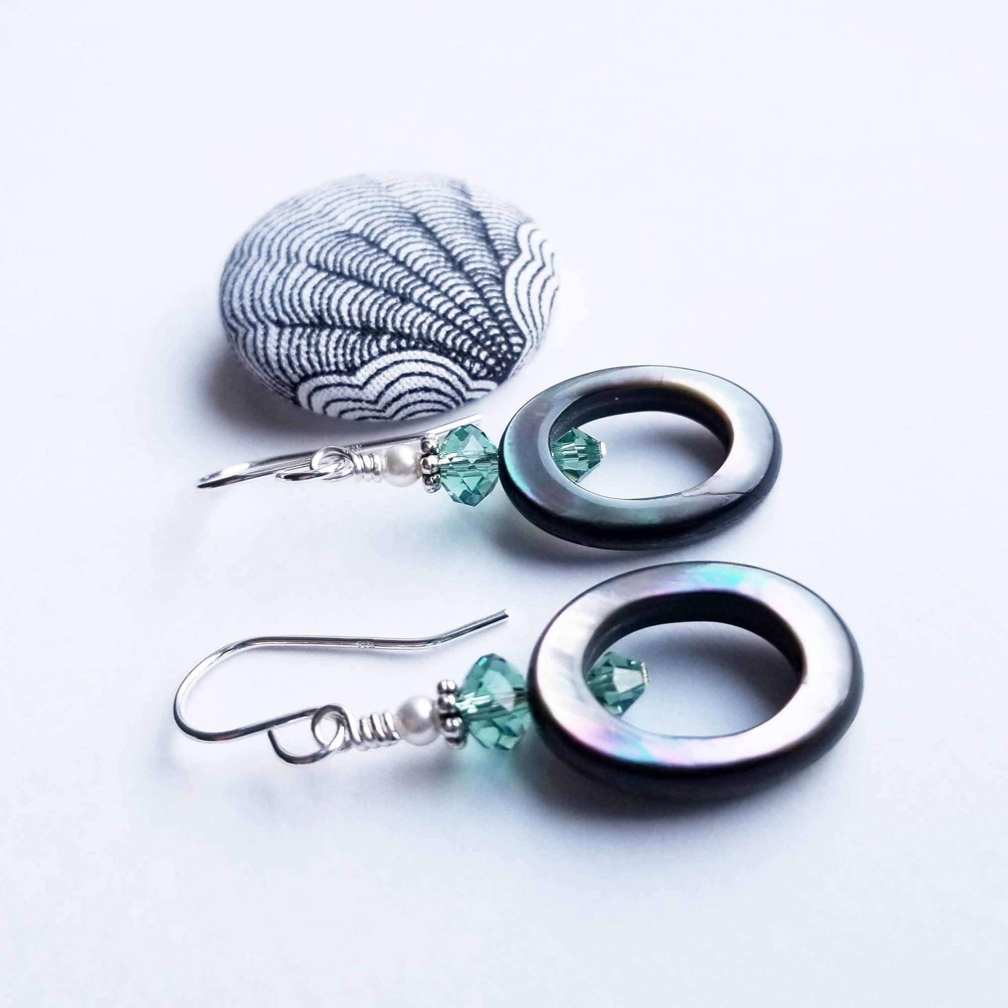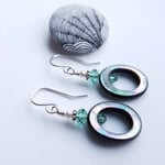 Oval Black Mother of Pearl + Erinite Swarovski Crystal Earrings