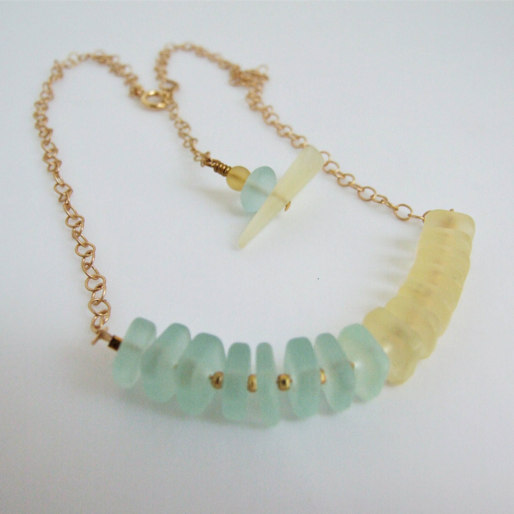 Pastel Yellow & Seafoam Sea Glass Necklace